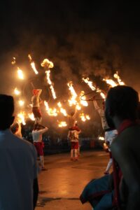 途中、爆竹のような大きな音や独特の匂いがあり、